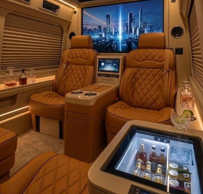 Frigobar integrado, cafetera Nespresso y compartimentos para cristalería fina.